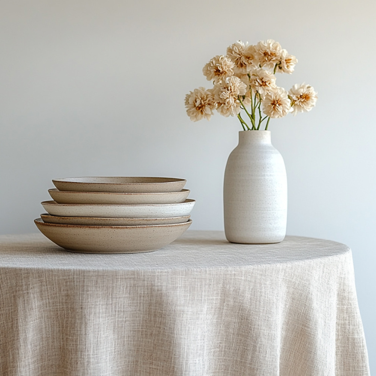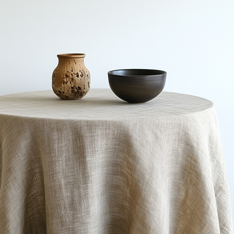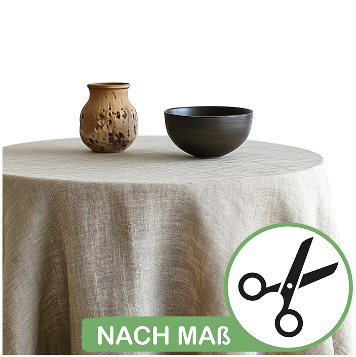 - Runde Leinentischdecke, maßgeschneidert, in Beige