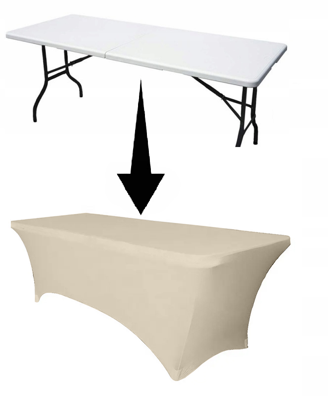 - Elastische Tischhusse für Banketttische 180x76 cm in Beige. Passt sich perfekt an Tischplatte und Beine an. Ideal für Events und Feiern.