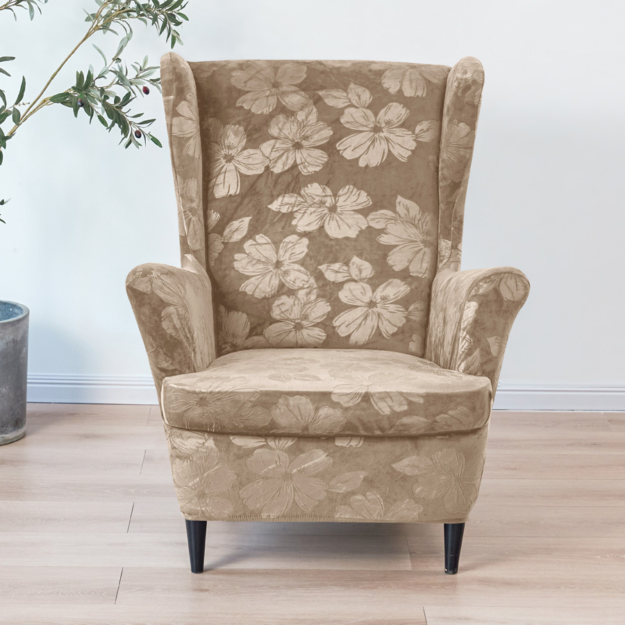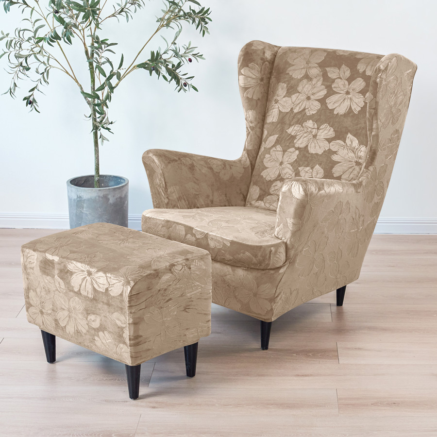 BEZUG für OHRENSESSEL Muster GEPRÄGTE HIBISKUSBLÜTEN VELOURS BEIGE