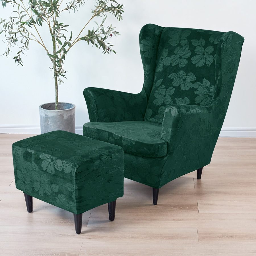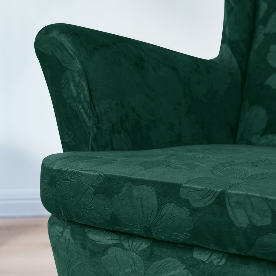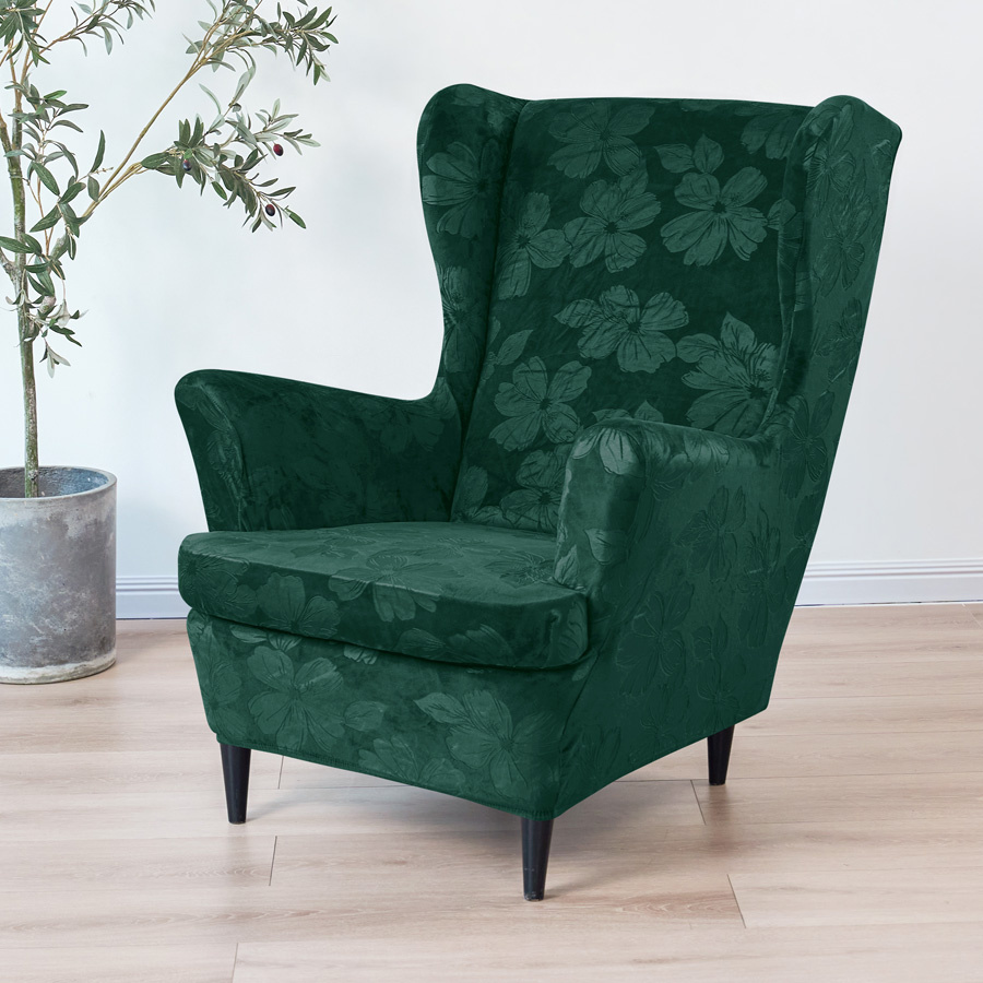 BEZUG für OHRENSESSEL Muster GEPRÄGTE HIBISKUSBLÜTEN VELOURS FLASCHENGRÜN