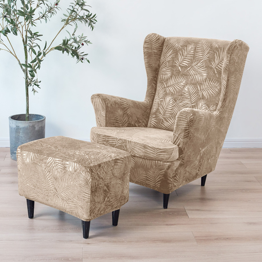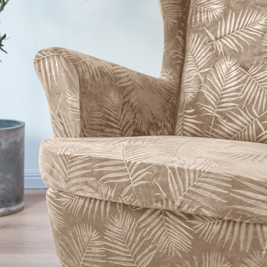 BEZUG für OHRENSESSEL Muster GEPRÄGTE PALMENBLÄTTER VELOURS BEIGE