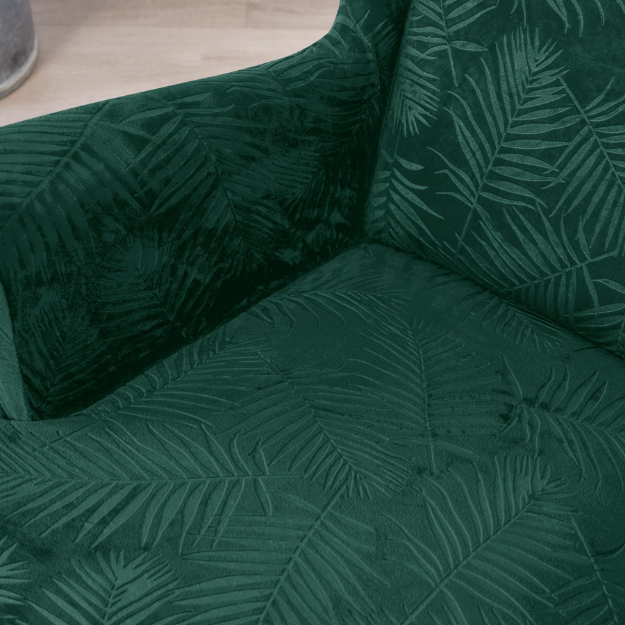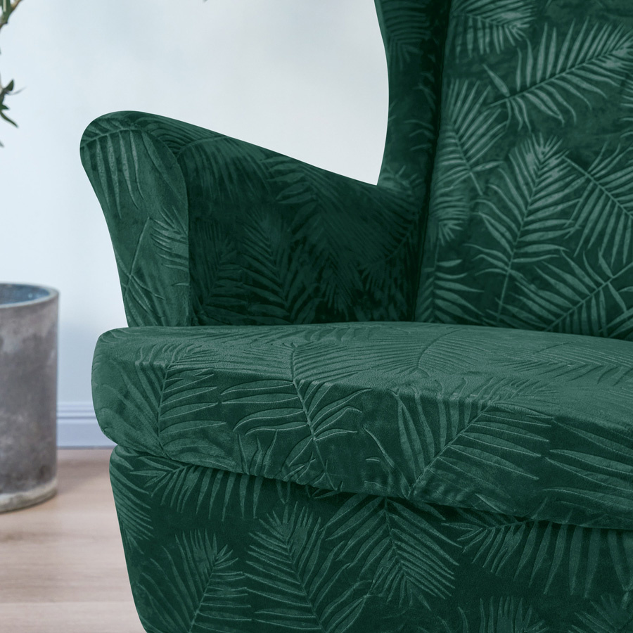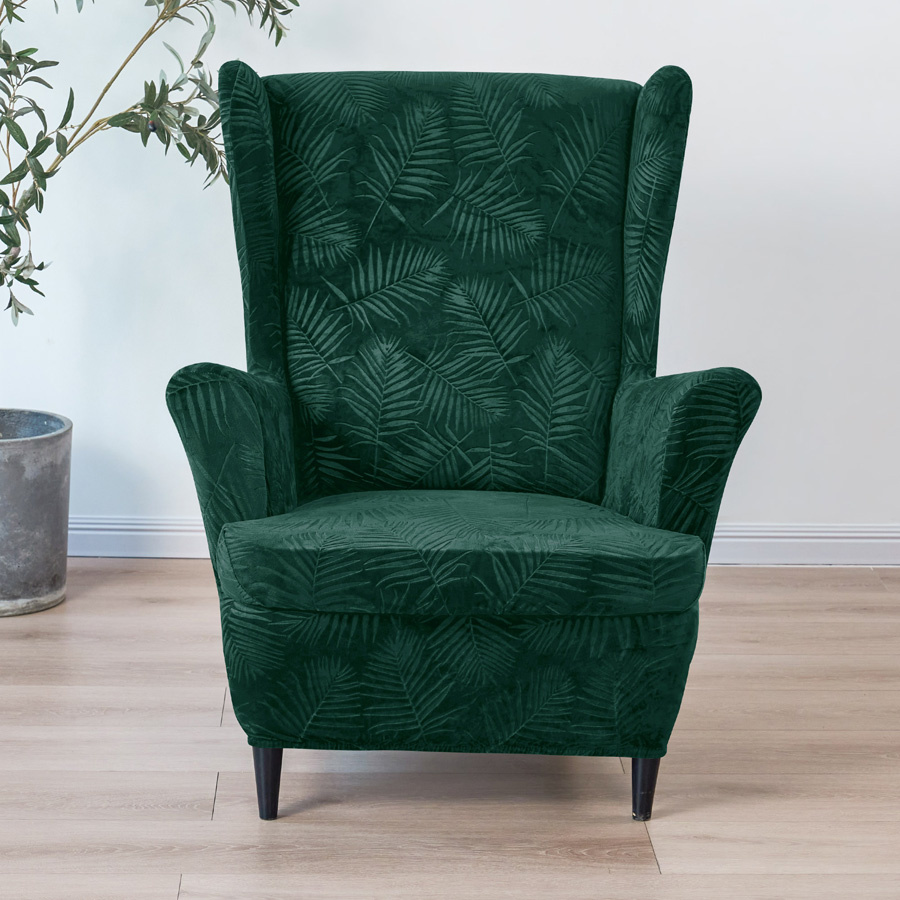 BEZUG für OHRENSESSEL Muster GEPRÄGTE PALMENBLÄTTER VELOURS FLASCHENGRÜN