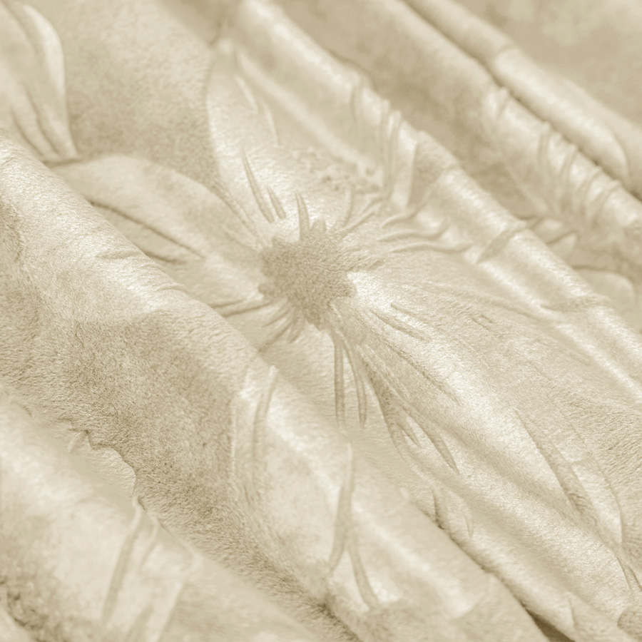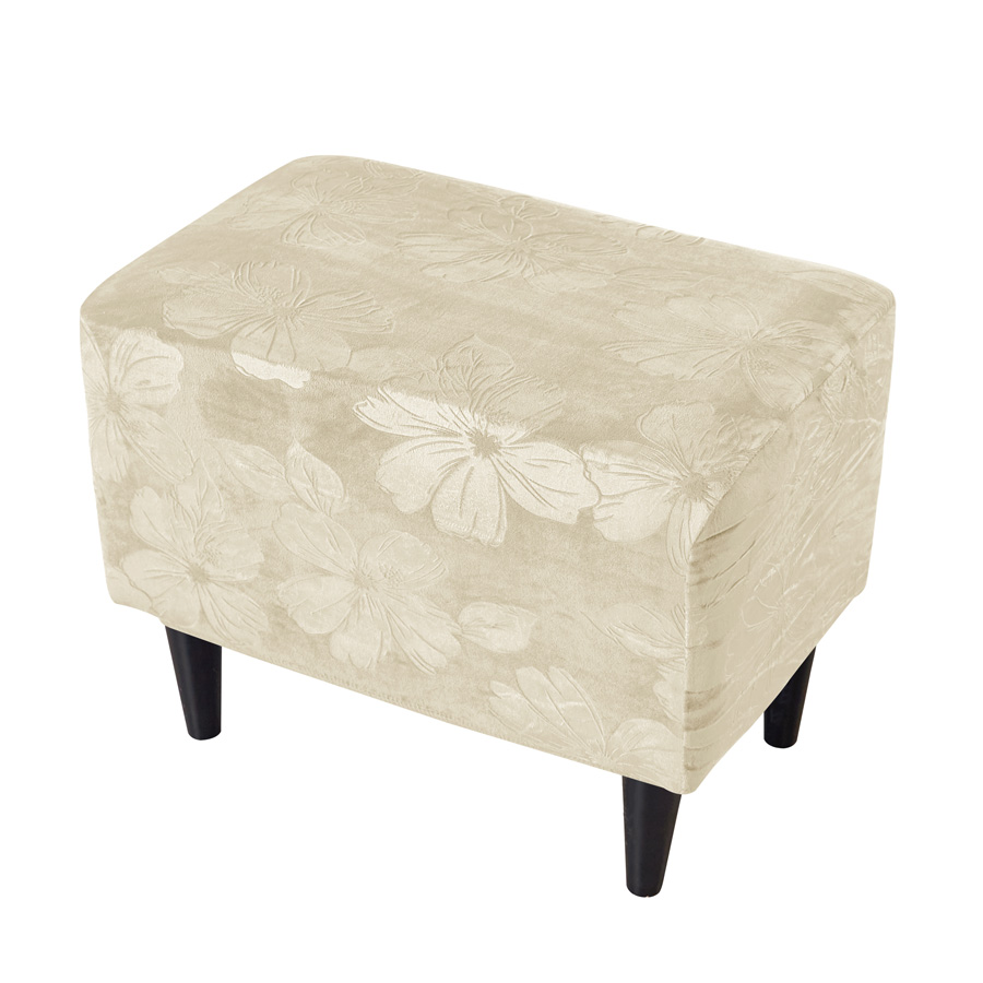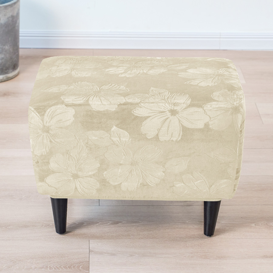 BEZUG für POUF / FUSSHOCKER GEPRÄGTES Blumenmuster VELOURS CREMEFARBEN