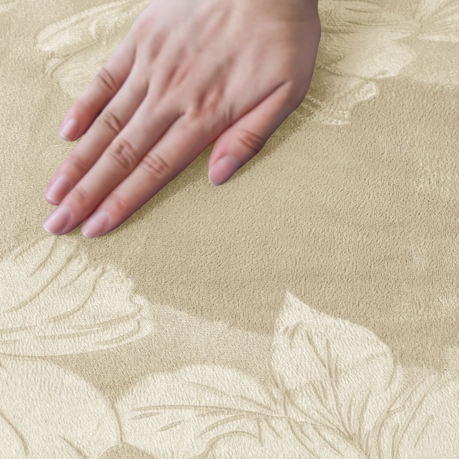 ✔️ Die Blütenstruktur verleiht dem Pouf eleganten Charakter und kaschiert kleine Unebenheiten.