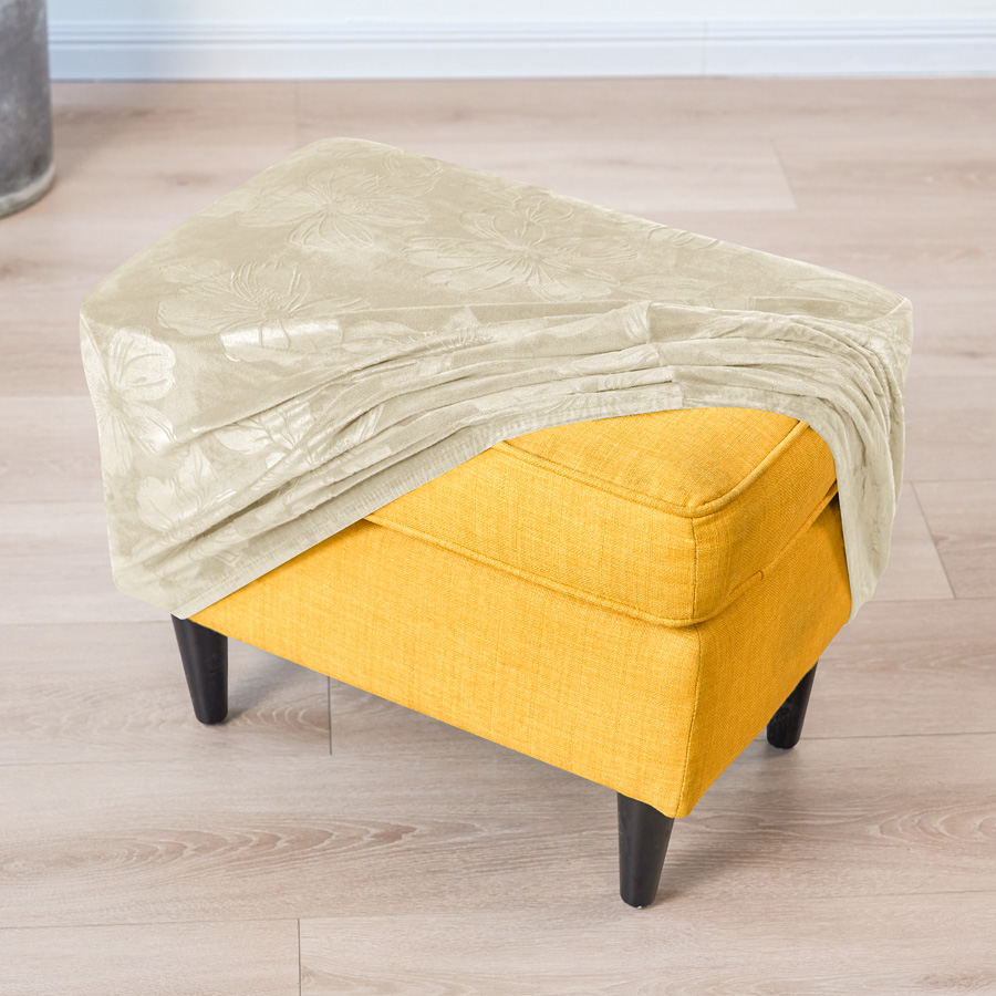 ✔️ VELOURS-BEZUG FÜR POUF / FUSSHOCKER – GEPRÄGTES BLUMENMUSTER ✔️