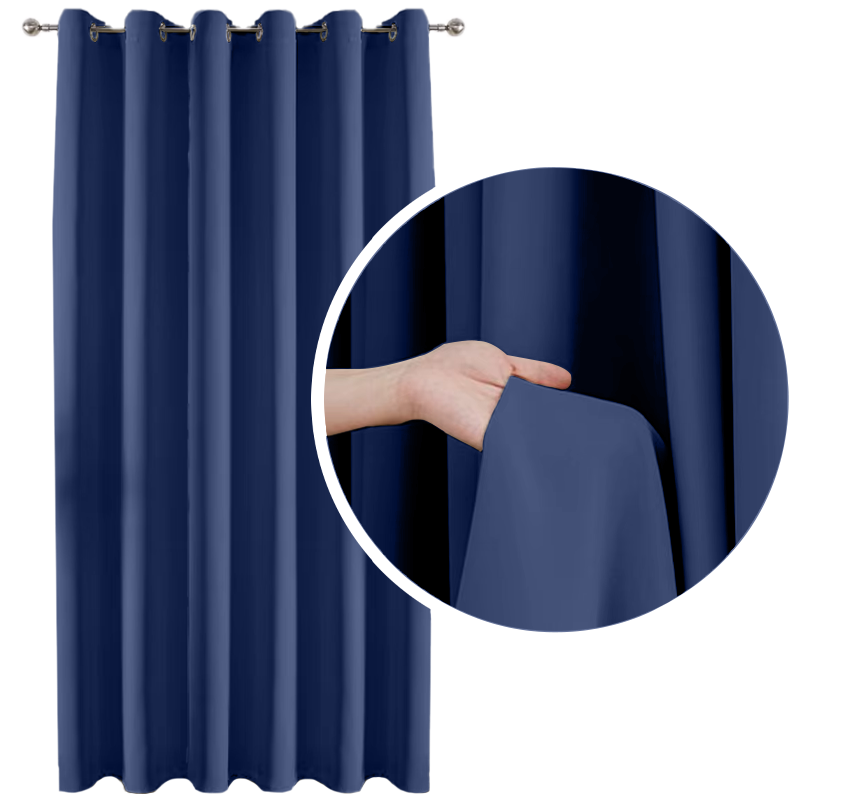 Glatter Verdunkelungsvorhang 90% in Marineblau 140x250 cm. Dicker Stoff und einfache Gardine mit Ösen