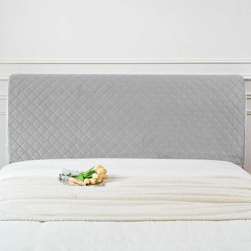 KOPFTEIL-HUSSE FÜR BETT – GESTEPPT – HELLGRAU