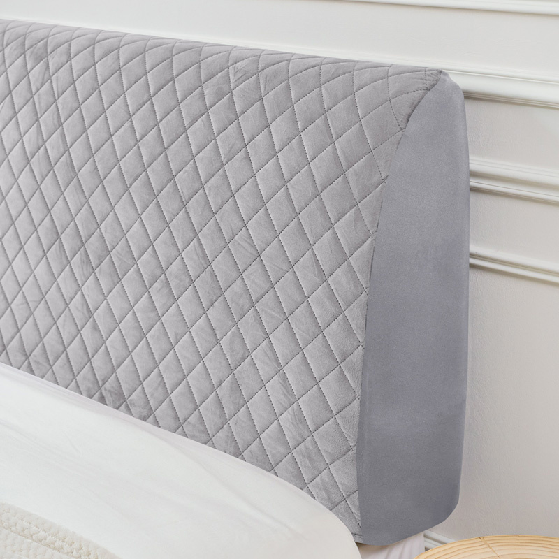 KOPFTEIL-HUSSE FÜR BETT – GESTEPPT – HELLGRAU