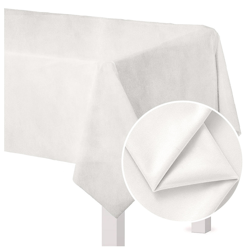 Unsere Tischdecken sind weiß und haben eine matte Veloursstruktur – sie bieten einen stilvollen Hintergrund für Gläser, Tassen und Besteck.