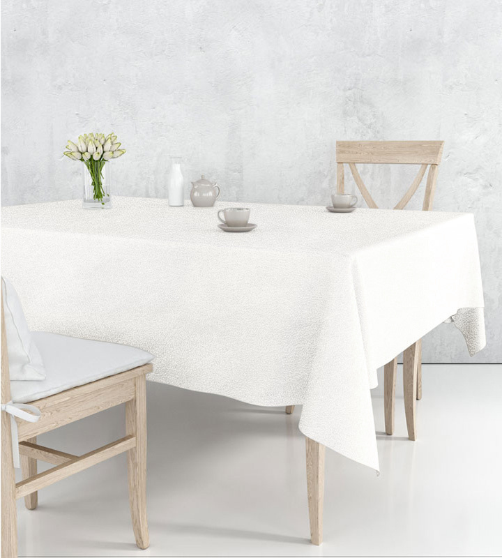 - Tischdecke mit Struktur aus mattem Velours in der Farbe Milchweiß