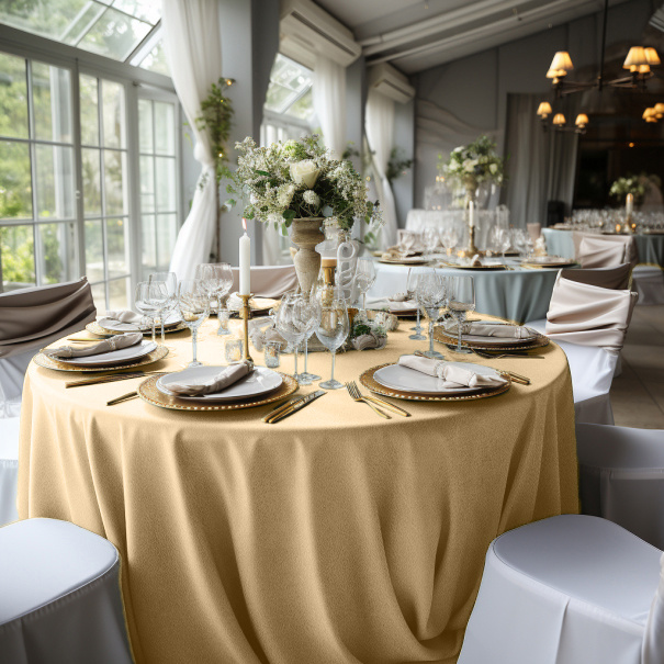 Die cappuccinofarbene, runde Tischdecke, die wir Ihnen hier anbieten, ist eine stilvolle Dekoration für Feiern, Hochzeiten und Bankette.