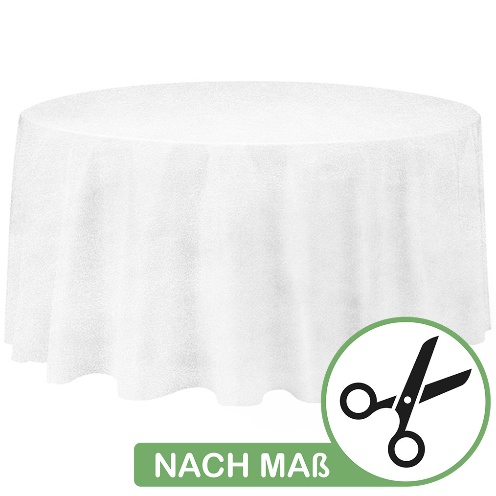 - Rundes Tischtuch mit matter Veloursstruktur in der Farbe weiß, maßgeschneidert