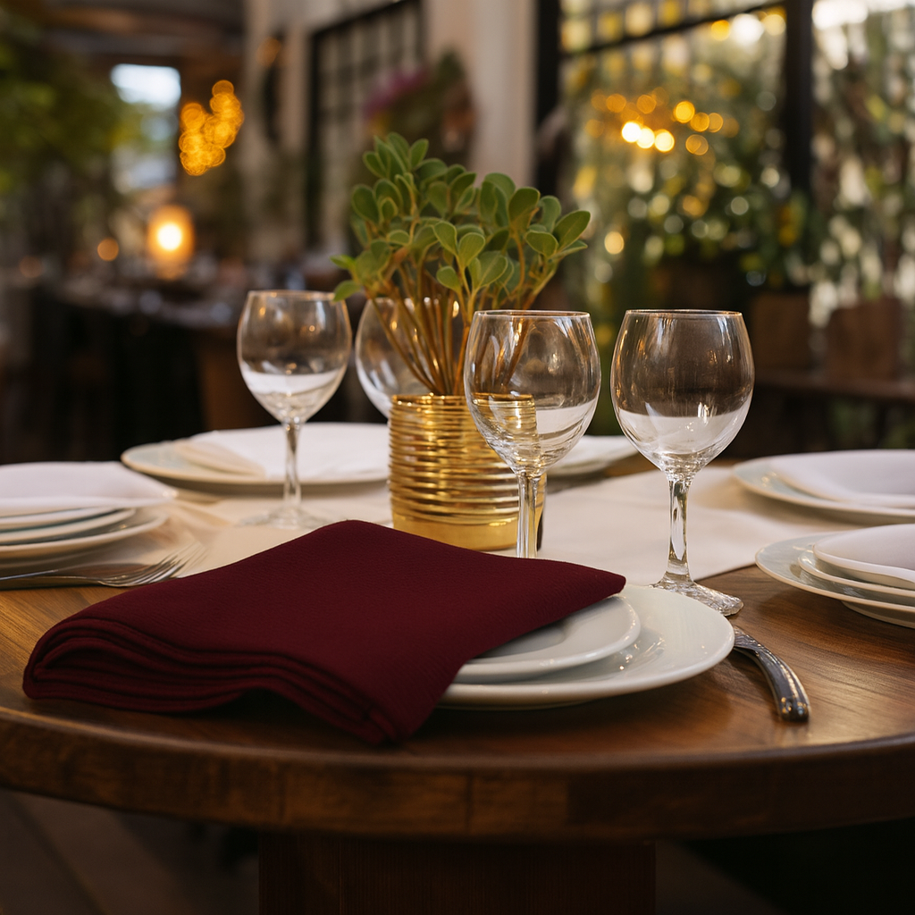 - Elegante bordeauxrote Stoffservietten sind die perfekte Ergänzung für festliche Tische, Feiern und Familienessen. Weich, langlebig und wiederverwendbar – sie verbinden Funktionalität mit Stil.